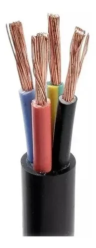 Cable tipo taller 4 x 2.5 mm con vaina externa de alta calidad. Este cable eléctrico tipo taller tiene cuatro conductores (4 hilos) de cobre, cada uno con una sección transversal de 2,50 mm, recubiertos por una capa aislante de pvc de negro de primera calidad.