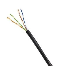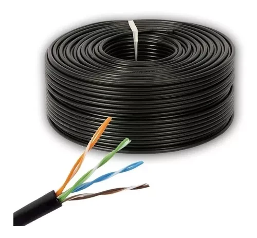 Cable Utp Cat 5e de exterior color negro diseñados especialmente para aplicaciones horizontales de forma aérea en redes de cableado estructurado para conectar al usuario con el panel de administración o con los paneles de interconexión. Esta cable esta configurado para instalar en exteriores con vaina de Pvc color Negro.